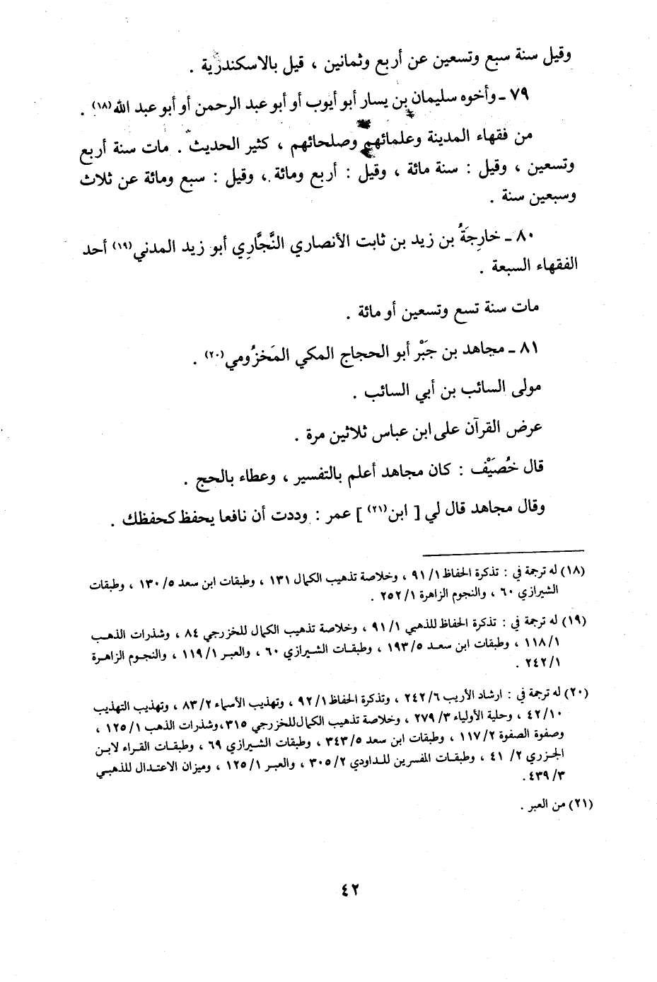 80 - خَارِجَة بن زيد بن ثَابت الْأنْصَارِيّ النجاري أَبُو زيد الْمدنِي أحد الْفُقَهَاء السَّبْعَة