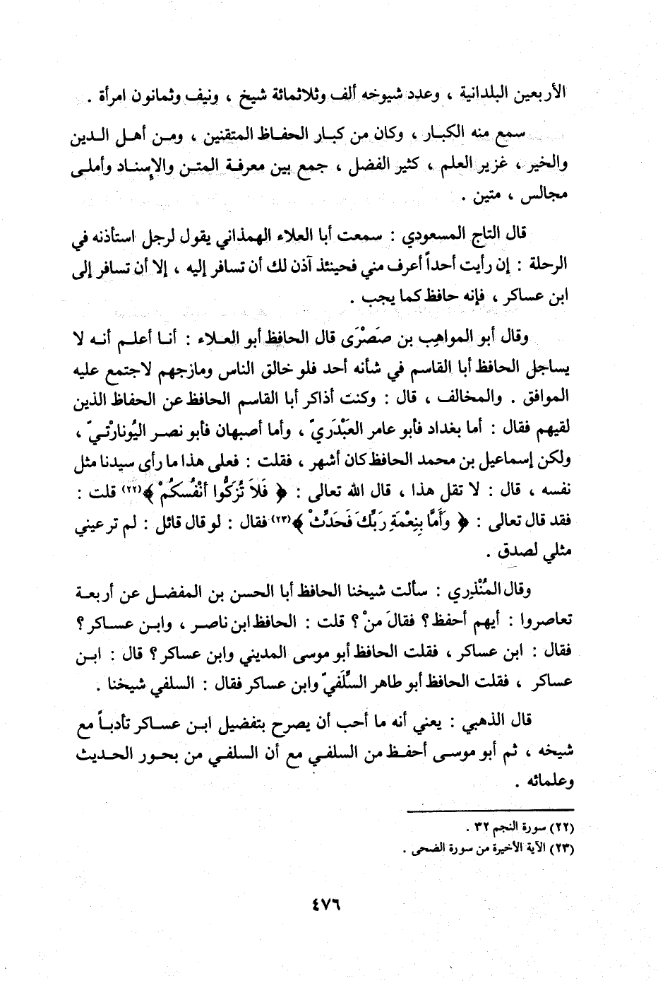 قَالَ الذَّهَبِيّ يَعْنِي أَنه مَا أحب أَن يُصَرح بتفضيل ابْن عَسَاكِر تأدباً مَعَ شَيْخه ثمَّ أَبُو مُوسَى أحفظ من السلَفِي مَعَ أَن السلَفِي من بحور الحَدِيث وعلمائه