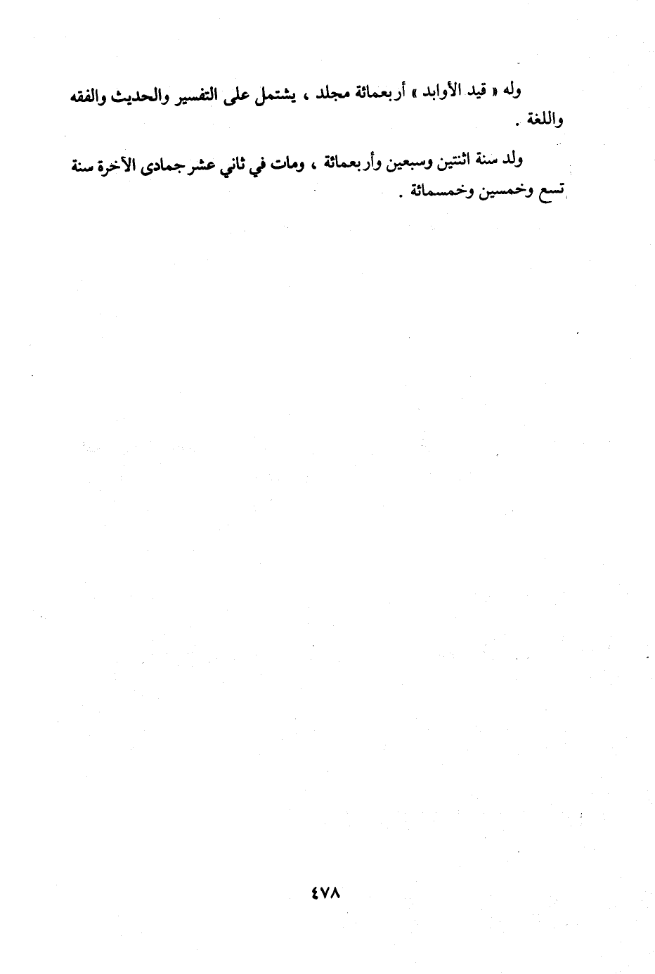 وَله قيد الأوابد أَرْبَعمِائَة مُجَلد يشْتَمل على التَّفْسِير والْحَدِيث وَالْفِقْه واللغة