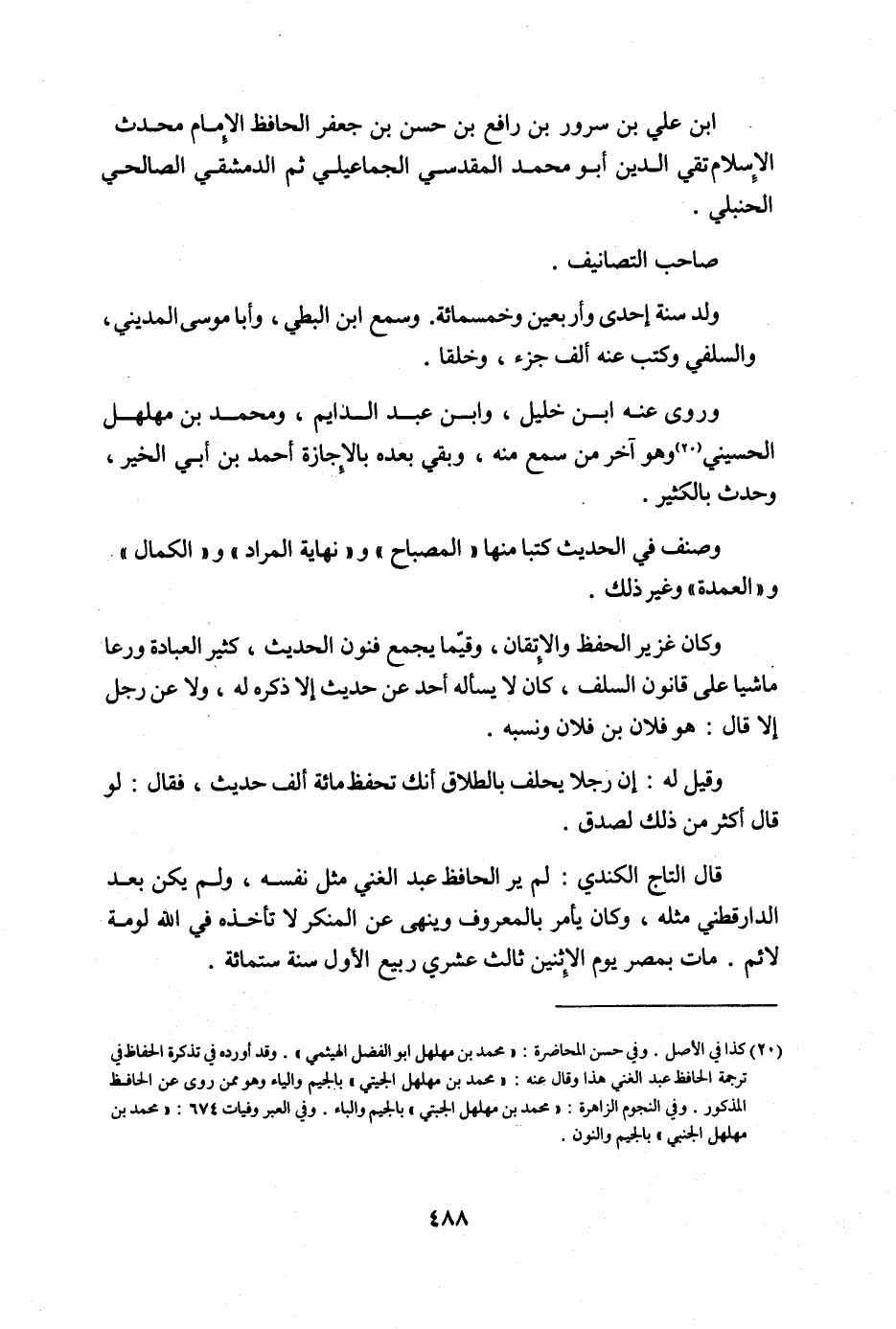 ابْن عَليّ بن سرُور بن رَافع بن حسن بن جَعْفَر الْحَافِظ الإِمَام مُحدث الْإِسْلَام تَقِيّ الدّين أَبُو مُحَمَّد الْمَقْدِسِي الجماعيلي ثمَّ الدِّمَشْقِي الصَّالِحِي الْحَنْبَلِيّ