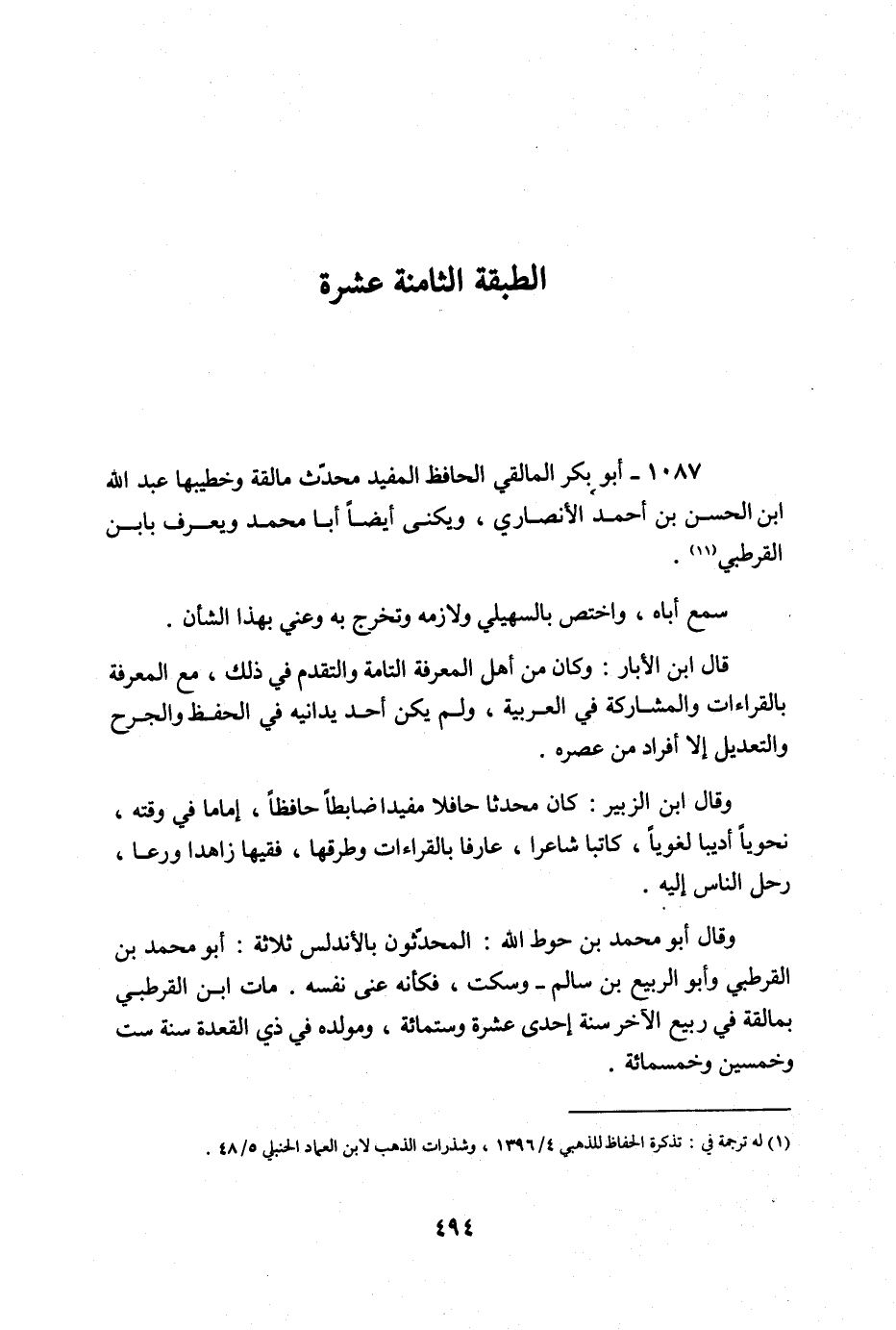 1087 - أَبُو بكر المالقي الْحَافِظ الْمُفِيد مُحدث مالقة وخطيبها عبد الله ابْن الْحسن بن أَحْمد الْأنْصَارِيّ ويكنى أَيْضا أَبَا مُحَمَّد وَيعرف بِابْن الْقُرْطُبِيّ