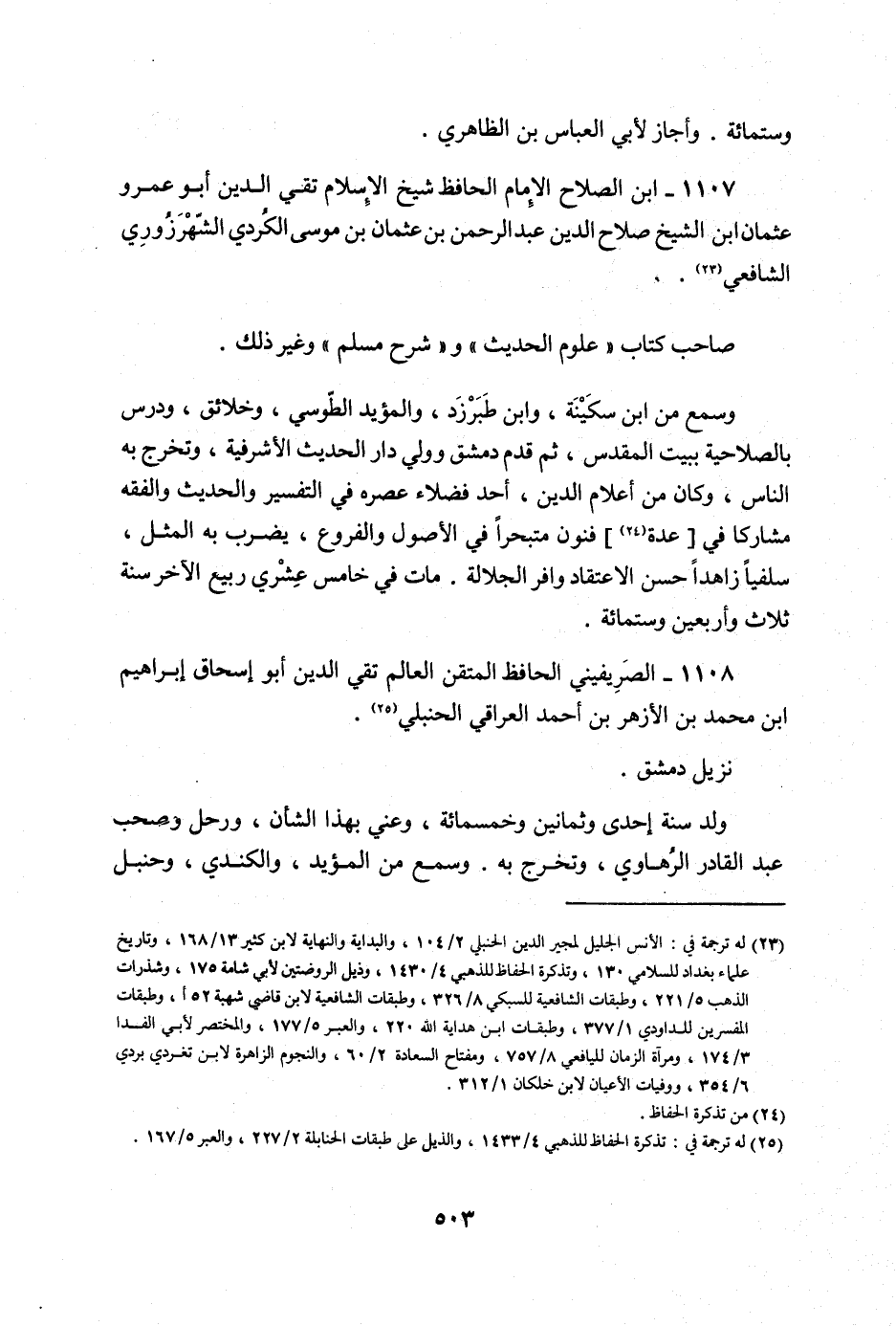 1107 - ابْن الصّلاح الإِمَام الْحَافِظ شيخ الْإِسْلَام تَقِيّ الدّين أَبُو عَمْرو عُثْمَان ابْن الشَّيْخ صَلَاح الدّين عبد الرَّحْمَن بن عُثْمَان بن مُوسَى الْكرْدِي الشهرزوري الشَّافِعِي