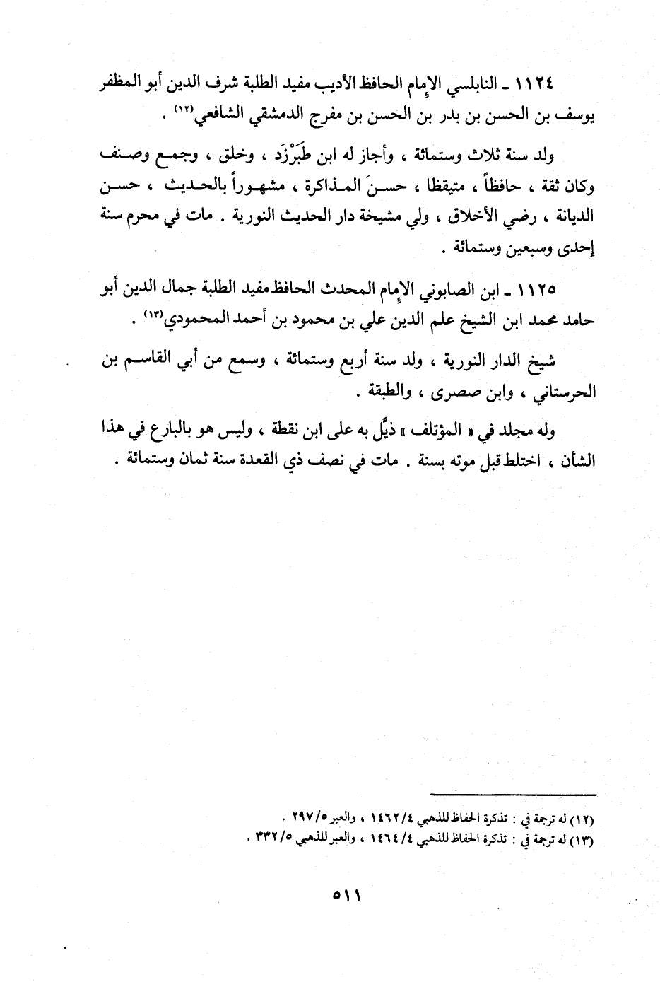 1124 - النابلسي الإِمَام الْحَافِظ الأديب مُفِيد الطّلبَة شرف الدّين أَبُو المظفر يُوسُف بن الْحسن بن بدر بن الْحسن بن مفرج الدِّمَشْقِي الشَّافِعِي
