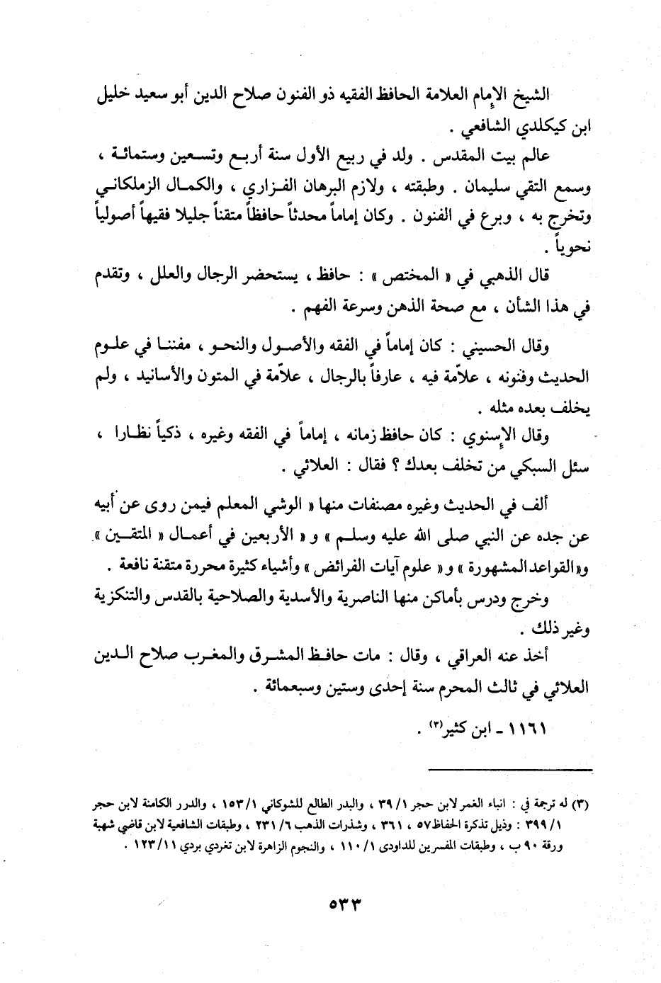 الشَّيْخ الإِمَام الْعَلامَة الْحَافِظ الْفَقِيه ذُو الْفُنُون صَلَاح الدّين أَبُو سعيد خَلِيل ابْن كيكلدي الشَّافِعِي