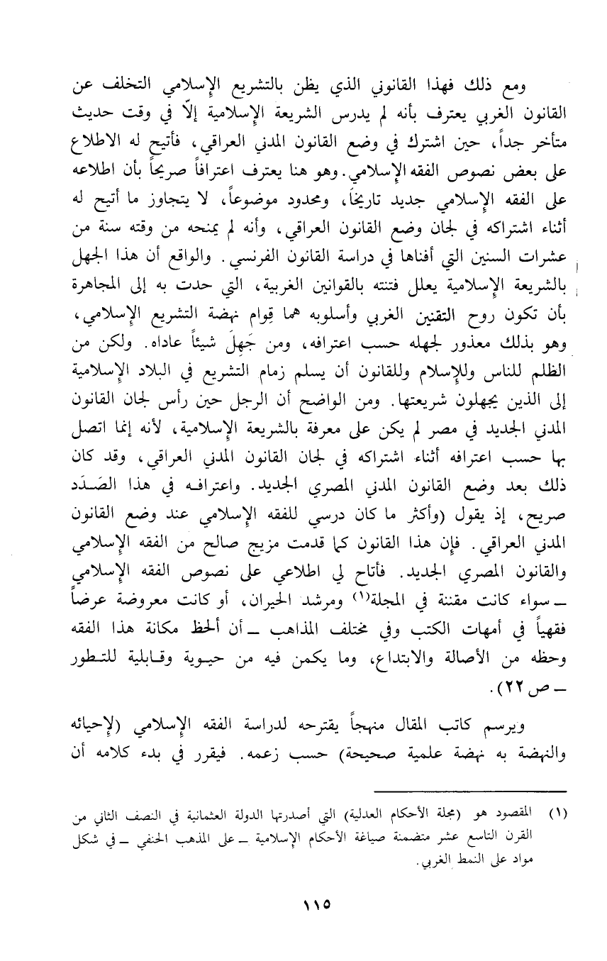 (¬1) المقصود هو (مجلة الأحكام العدلية) التي أصدرتها الدولة العثمانية في النصف الثاني من القرن التاسع غر متضمنة صياغة الأحكام الإِسلامية - على المذهب الحنفي - في شكل مواد على النمط الغربي.