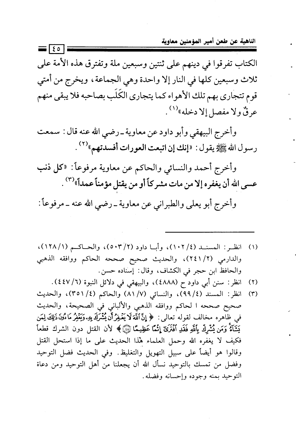 وأخرج أبو يعلى والطبراني عن معاوية رضي الله عنه مرفوعا: