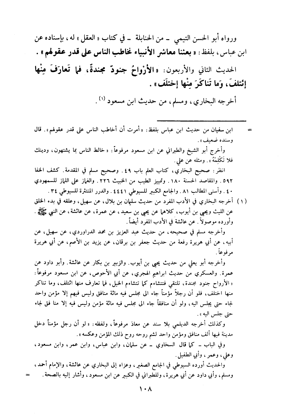 الحَدِيث الثَّانِي والاربعون الارواح جنود مجندة فَمَا تعارف مِنْهَا ائتلف وَمَا تناكر مِنْهَا اخْتلف