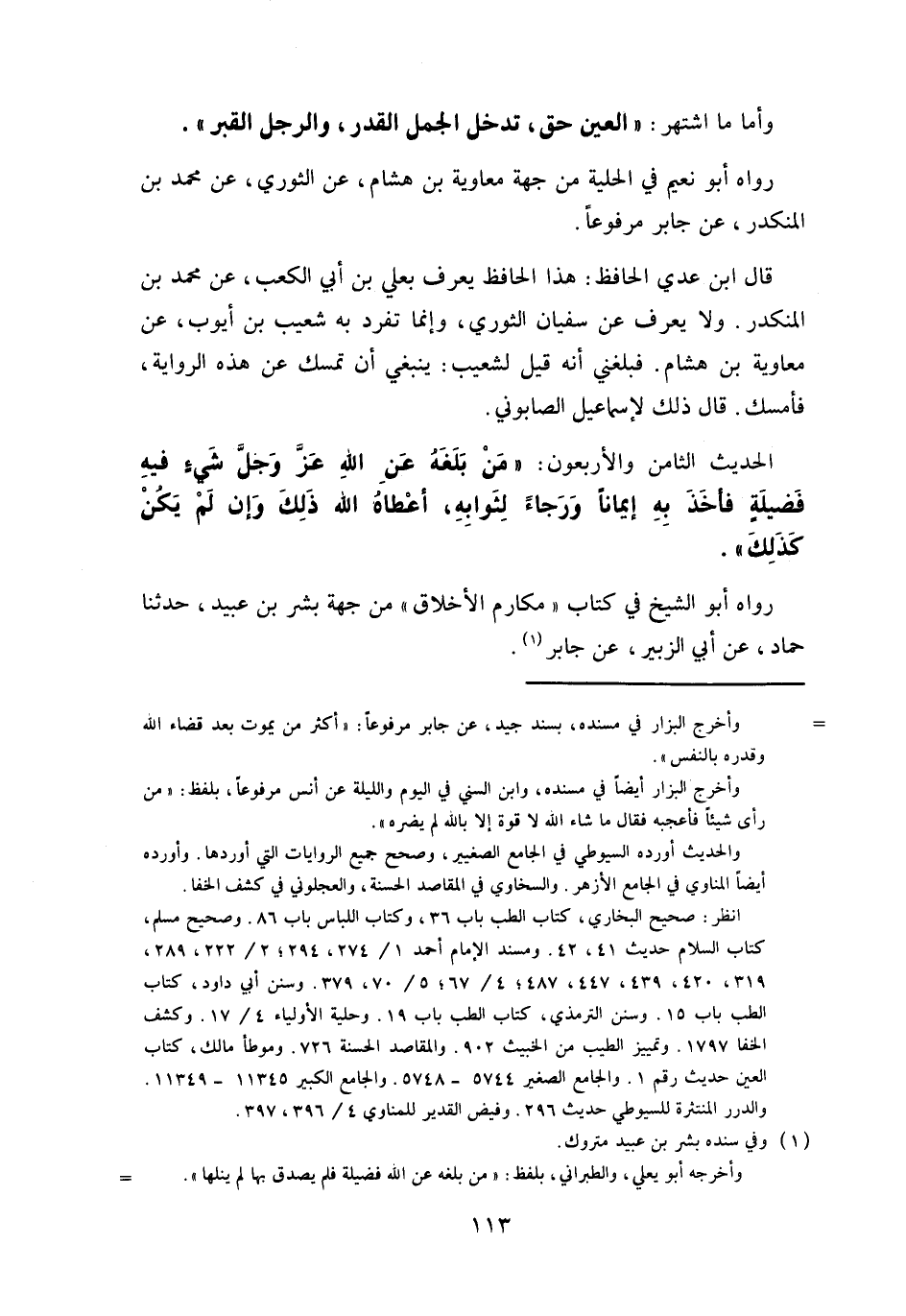 واما مَا اشتهرالعين حق تدخل الْجمل الْقدر وَالرجل الْقَبْر