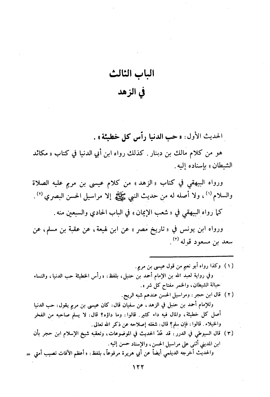 الحَدِيث الاول حب الدُّنْيَا رَأس كل خَطِيئَة