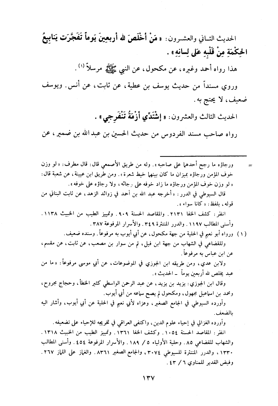 الحَدِيث الثَّانِي وَالْعشْرُونَ من أخْلص لله اربعين يَوْمًا تَفَجَّرَتْ ينابيع الْحِكْمَة من قلبه على لِسَانه