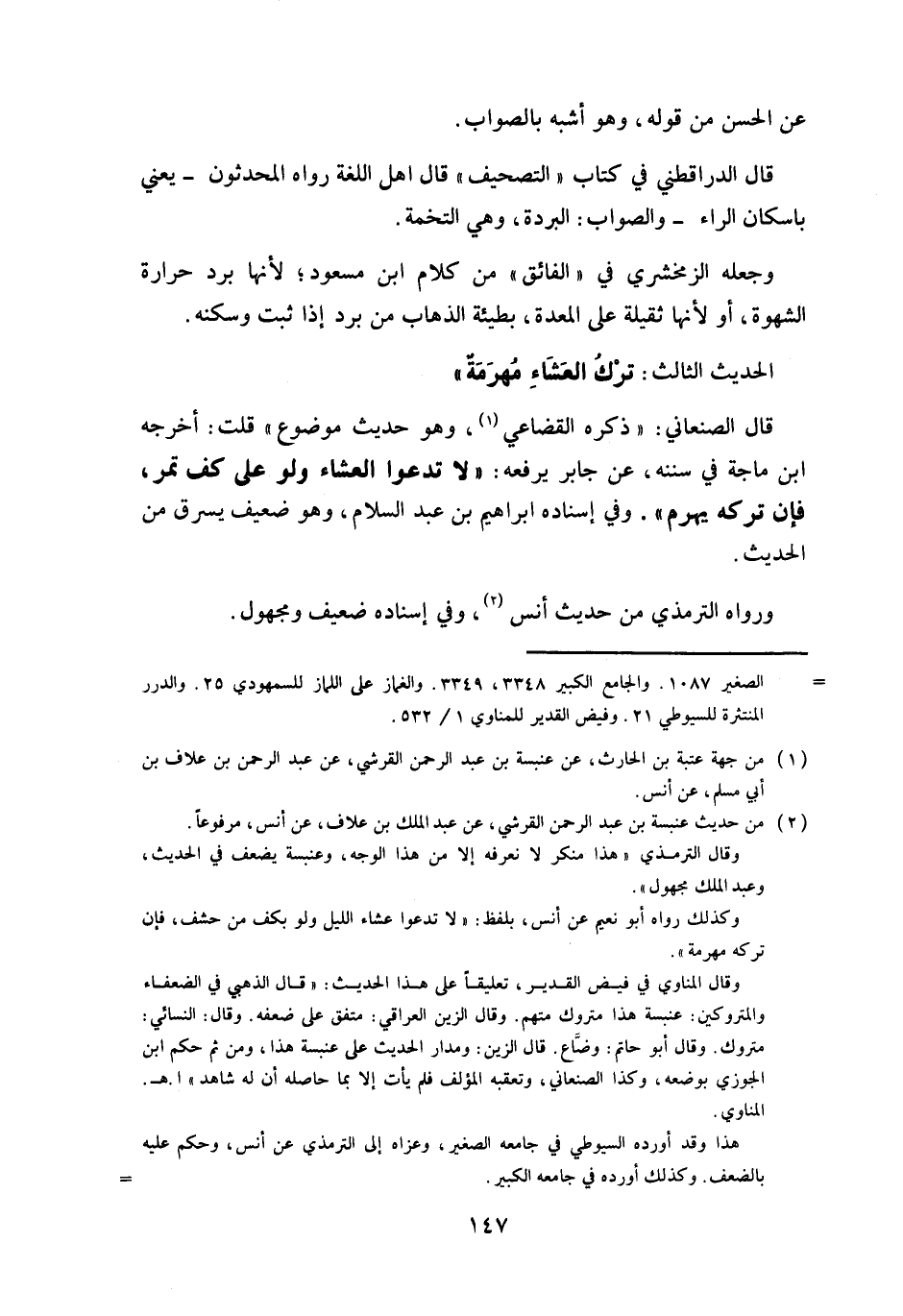 الحَدِيث الثَّالِث ترك الْعشَاء مهرمة