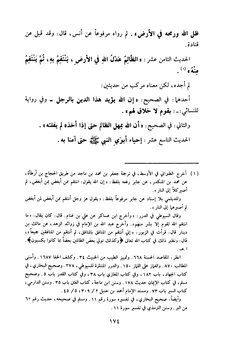 الحَدِيث الثَّامِن عشر الظَّالِم عدل الله فِي الارض ينْتَقم بِهِ ثمَّ ينْتَقم مِنْهُ