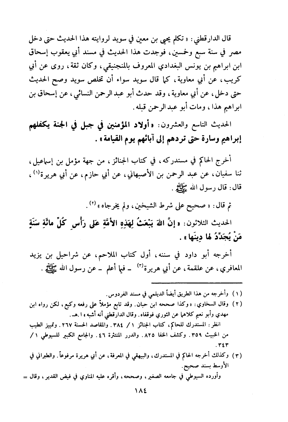 الحَدِيث الثَّلَاثُونَ ان الله يبْعَث لهَذِهِ الامة على رَأس كل مائَة سنة من يجدد لَهَا دينهَا