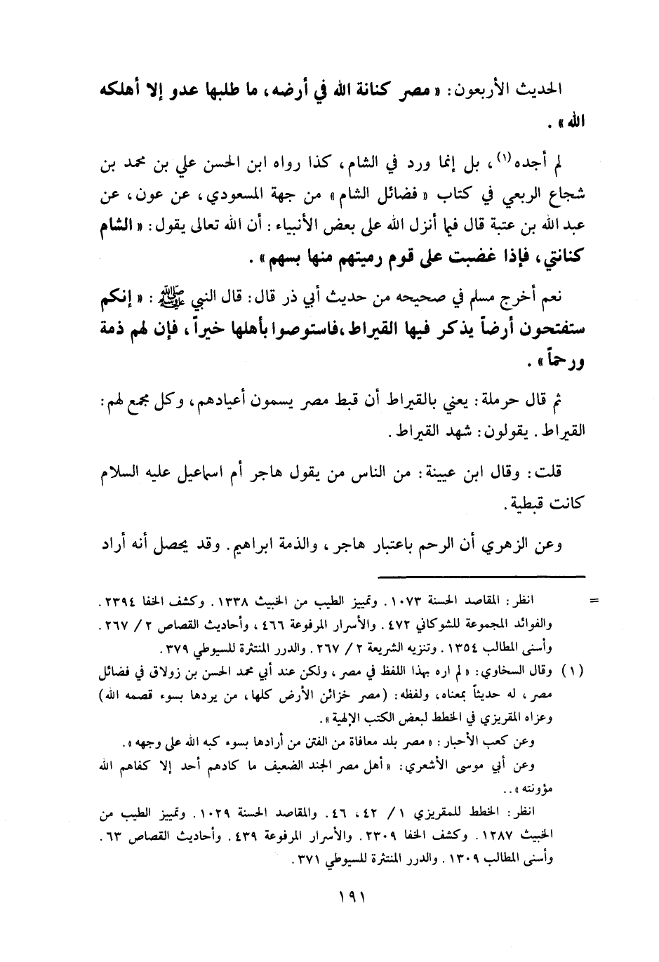الحَدِيث الاربعون مصر كنَانَة الله فِي ارضه مَا طلبَهَا عَدو الا اهلكه الله