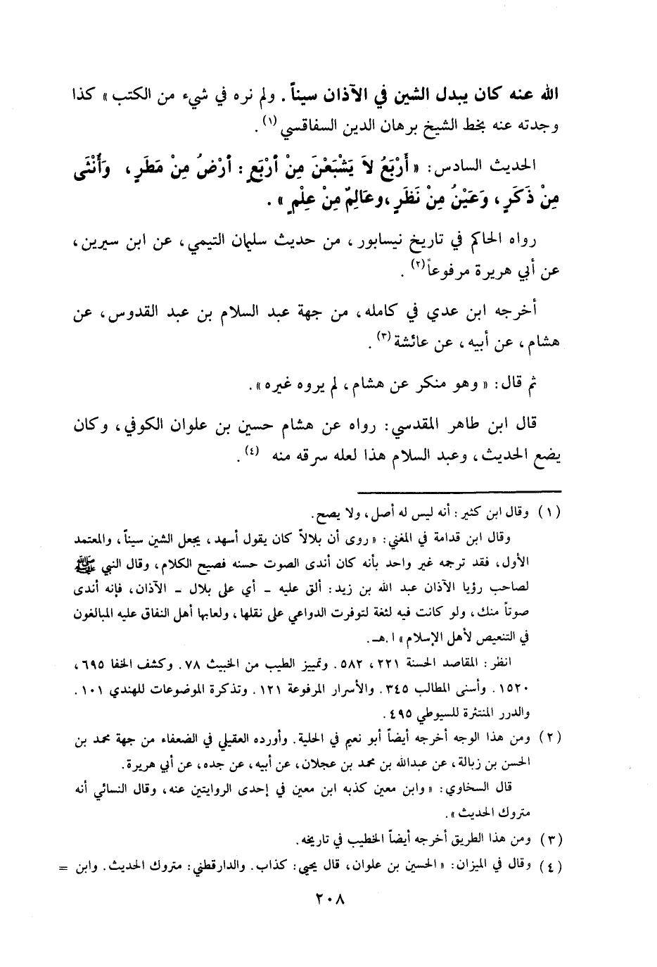 الله عَنهُ كَانَ يُبدل الشين فِي الآذان سينا وَلم نره فِي شَيْء من الْكتب كَذَا وجدته عَنهُ بِخَط الشَّيْخ برهَان الدّين السفاقسي