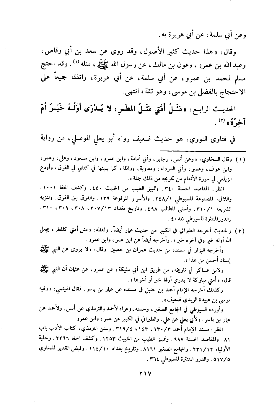 الحَدِيث الرَّابِع مثل امتي مثل الْمَطَر لَا يدْرِي اوله خير ام آخِره