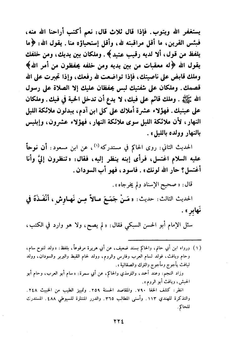 الحَدِيث الثَّانِي روى الْحَاكِم فِي مُسْتَدْركه عَن ابْن مَسْعُود ان نوحًا عَلَيْهِ السَّلَام اغْتسل فَرَأى ابْنه ينظر اليه فَقَالَ تنْظرُون الي وانا اغْتسل حَار الله لونك فاسود فَهُوَ اب السودَان