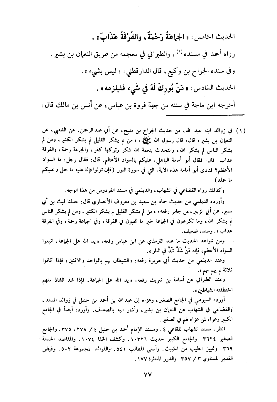 الحَدِيث الْخَامِس الْجَمَاعَة رَحْمَة والفرقة عَذَاب