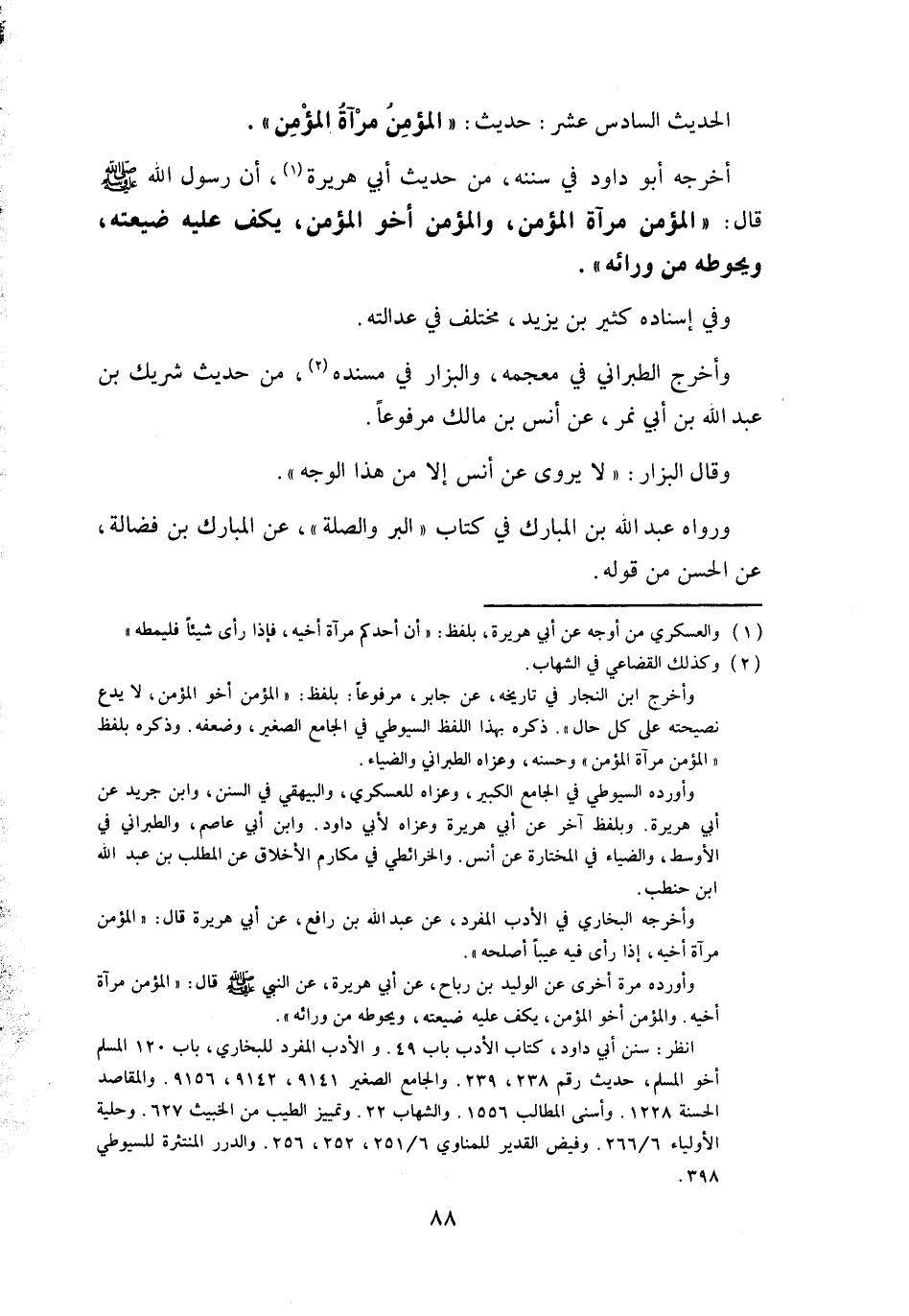 الحَدِيث السَّادِس عشر حَدِيث الْمُؤمن مرْآة الْمُؤمن