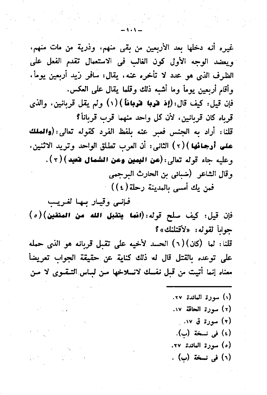 فإن قيل: كيف صلح قوله: (إِنَّمَا يَتَقَبَّلُ اللَّهُ مِنَ الْمُتَّقِينَ) جواباً لقوله: (لَأَقْتُلَنَّكَ) قلنا: لما (كان)
