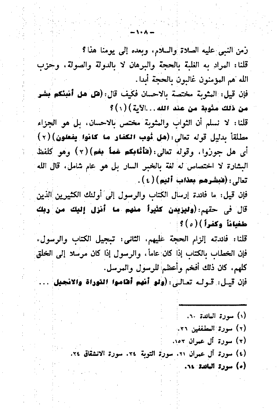 قلنا: فائدته إلزام الحجة عليهم، الثانى: تبجيل الكتاب والرسول.
