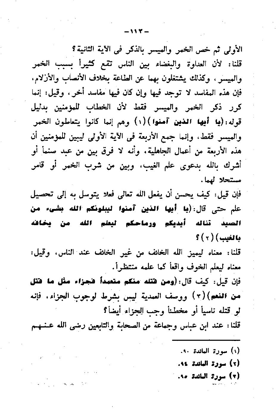 وهم إنما كانوا يتعاطون الخمر والميسر فقط، وإنما جمع الأربعة في الآية الأولى ليبين للمؤمنين أن هذه الأربعة من أعمال الجاهلية، وأنه لا فرق بين من عبد صنماً أو أشرك بالله بدعوى علم الغيب، وبين من شرب الخمر أو قامر