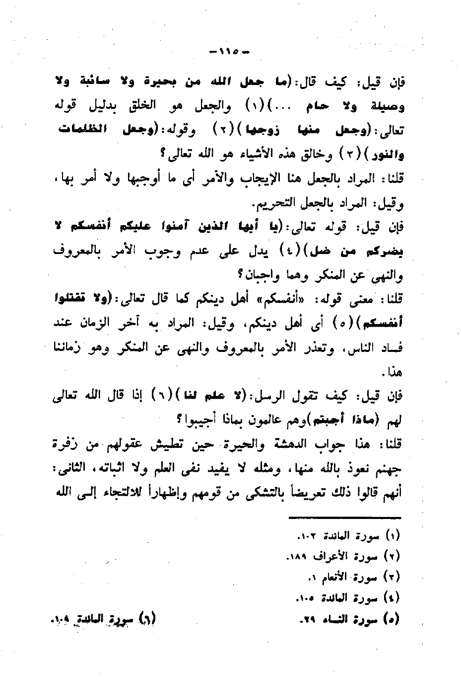 فإن قيل: قول تعالى: (يَا أَيُّهَا الَّذِينَ آمَنُوا عَلَيْكُمْ أَنْفُسَكُمْ لَا يَضُرُّكُمْ مَنْ ضَلَّ) .