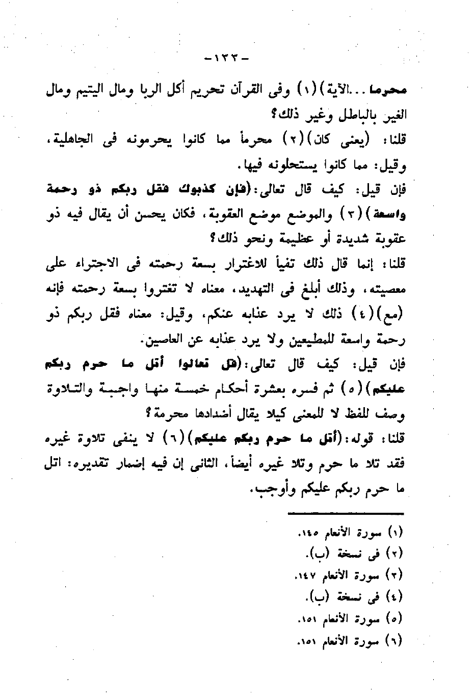لا ينفى تلاوة غيره فقد تلا ما حرم وتلا غيره أيضاً، الثانى إن فيه إضمار تقديره: اتل ما حرم ربكم عليكم وأوجب.