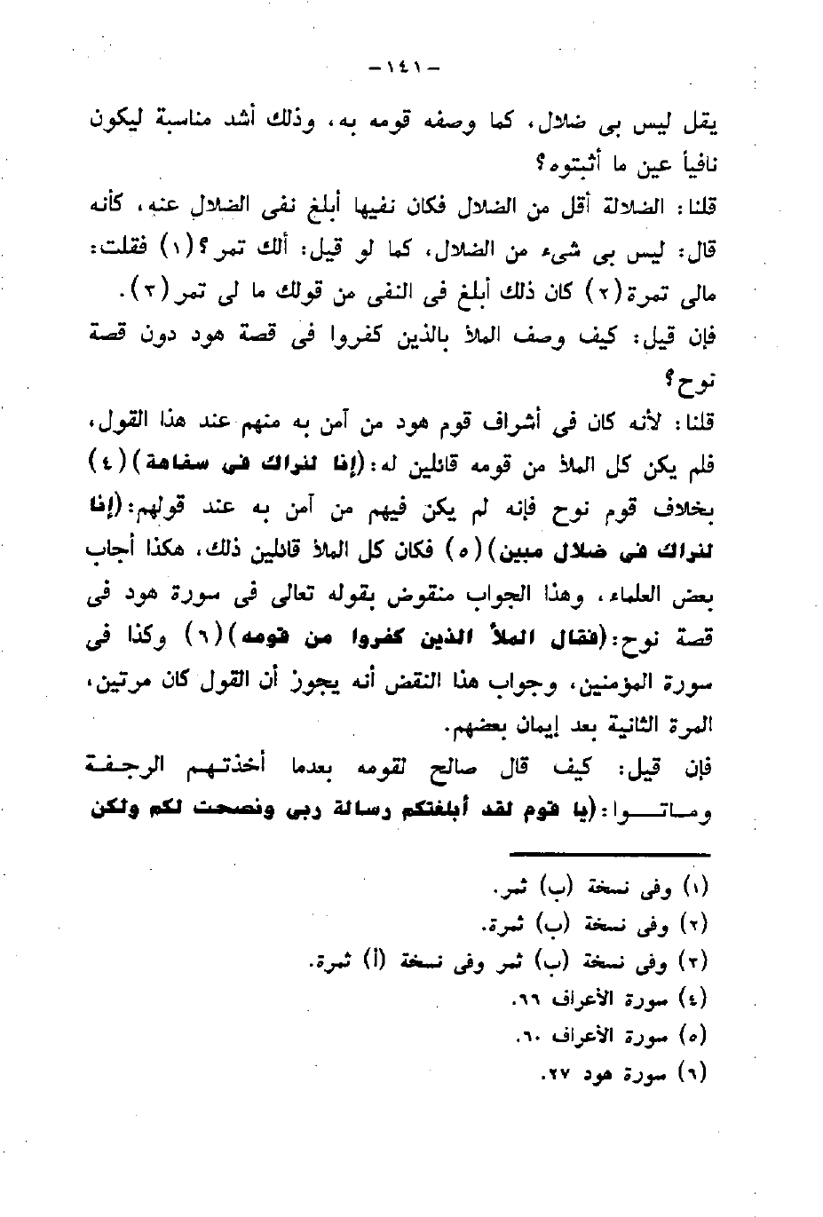 بعض العلماء، وهذا الجواب منقوض بقوله تعالى في سورة هود في قصة نوح: (فقَالَ الْمَلَأُ الَّذِينَ كَفَرُوا مِنْ قَوْمِهِ) وكذا في سورة المؤمنين، وجواب هذا النقض أنه يجوز أن القول كان مرتين، المرة الثانية بعد إيمان بعضهم.