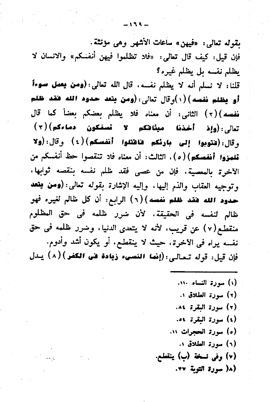 الآخرة بالمعصية، فإن من عصى فقد ظلم نفسه بنقصه ثوابها، وتوجيه العقاب والذم إليها، واليه الإشارة بقوله تعالى: (وَمَنْ يَتَعَدَّ حُدُودَ اللَّهِ فَقَدْ ظَلَمَ نَفْسَهُ)