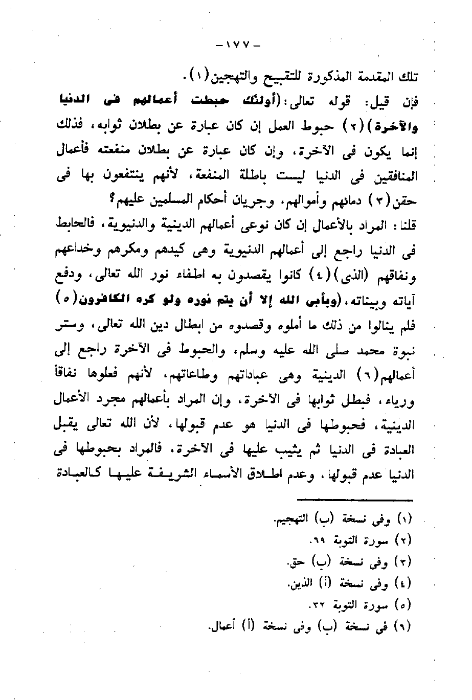 الدينية، فحبوطها في الدنيا هو عدم قبولها، لأن الله تعالى يقبل العبادة في الدنيا ثم يثيب عليها في الآخرة، فالمراد بحبوطها في الدنيا عدم قبولها، وعدم اطلاق الأسماء الشريفة عليها كالعبادة