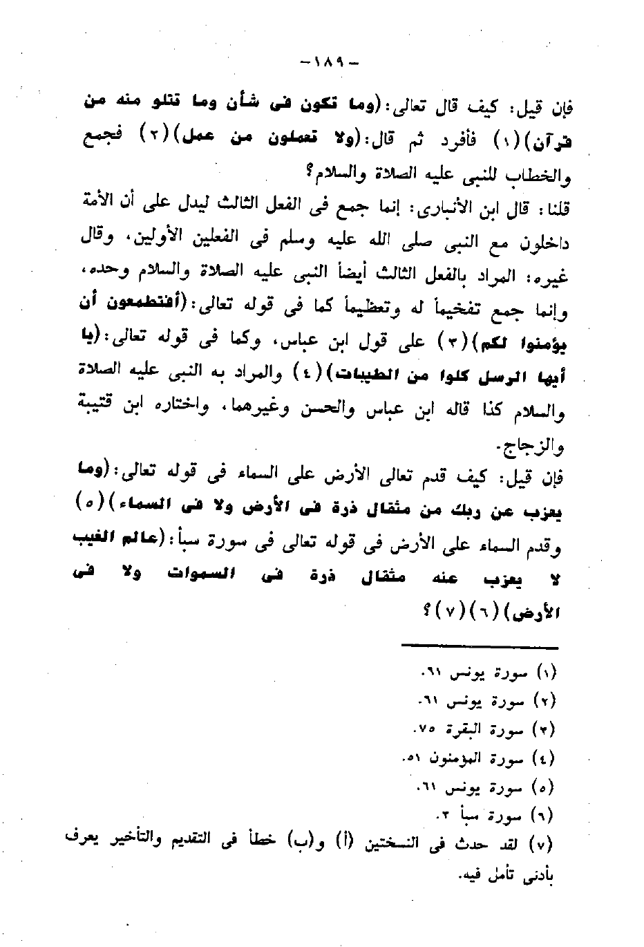 قلنا: قال ابن الأنباري: إنما جمع في الفعل الثالث ليدل على أن الأمة داخلون مع النبى صلى الله عليه وسلم في الفعلين الأولين، وقال غيره: المراد بالفعل الثالث أيضا النبى عليه الصلاة والسلام وحده، وإنما جمع تفخيما له وتعظيما كما في قوله تعالى: (أَفَتَطْمَعُونَ أَنْ يُؤْمِنُوا لَكُمْ) على قول ابن عباس، وكما في قوله تعالى: (يَا أَيُّهَا الرُّسُلُ كُلُوا مِنَ الطَّيِّبَاتِ) والمراد به النبى عليه الصلاة والسلام كذا قاله ابن عباس والحسن وغيرهما، واختاره ابن قتيبة والزجاج.
