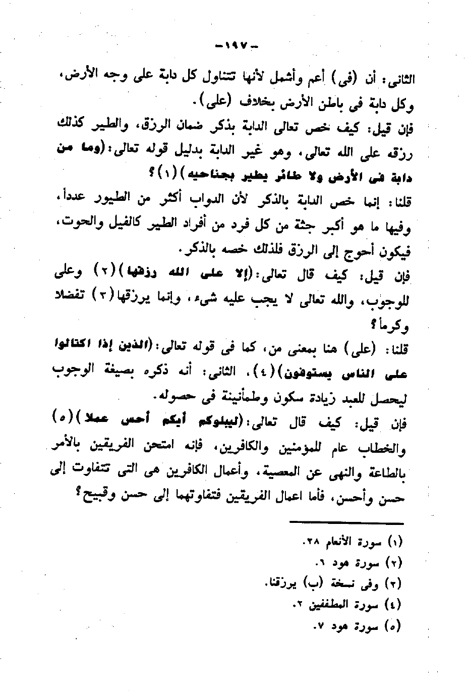 الثانى: أن (فى) أعم وأشمل لأنها تتناول كل دابة على وجه الأرض، وكل دبة في باطن الأرض بخلاف (على) .