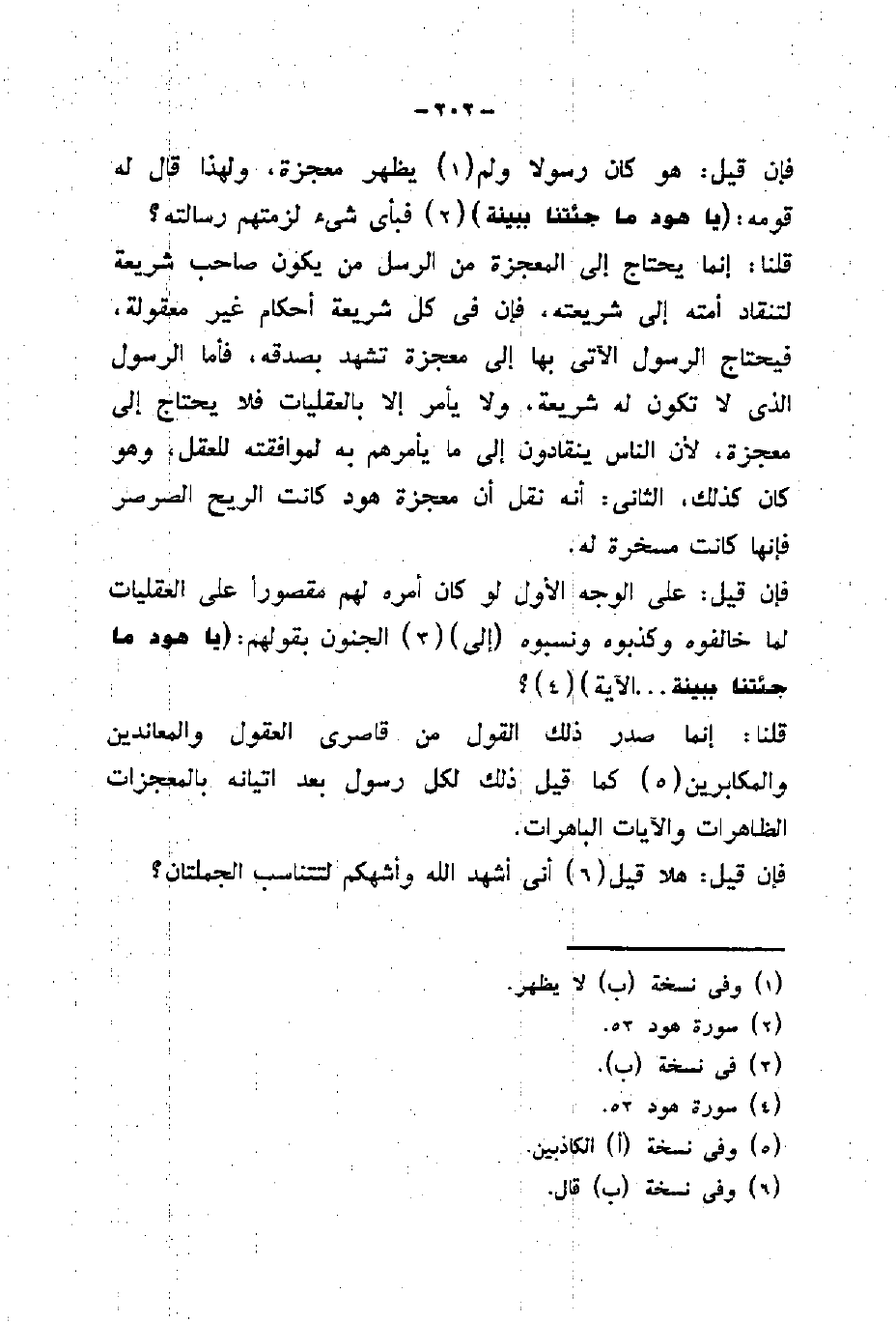 قلنا: إنما يحتاج إلى المعجزة من الرسل من يكون صاحب شريعة لتنقاد أمته إلى شريعته، فان في كل شريعة أحكام غير معقولة، فيحتاج الرسول الآتى بها إلى معجزة تشهد بصدقه، فأما الرسول الذي لا تكون له شريعة، ولا يأمر إلا بالعقليات فلا يحتاج إلى معجزة، لأن الناس ينقادون إلى ما يأمرهم به لموافقته للعقل، وهو كان كذلك، الثانى: أنه نقل أن معجزة هود كانت الريح الصرصر