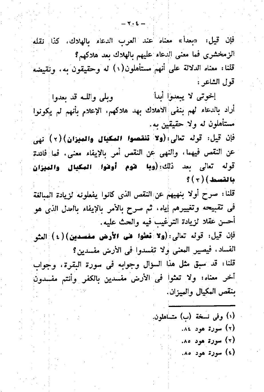 فإن قيل: "بعداً " معناه عند العرب الدعاء بالهلاك، كذا نقله الزمخشري فما معني الدعاء عليهم بالهلاك بعد هلاكهم؟
