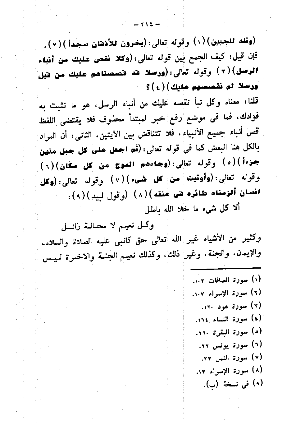 وقوله تعالى: (وَأُوتِيَتْ مِنْ كُلِّ شَيْءٍ) وقوله تعالى: (وَكُلَّ إِنْسَانٍ أَلْزَمْنَاهُ طَائِرَهُ فِي عُنُقِهِ) (وقول لبيد)