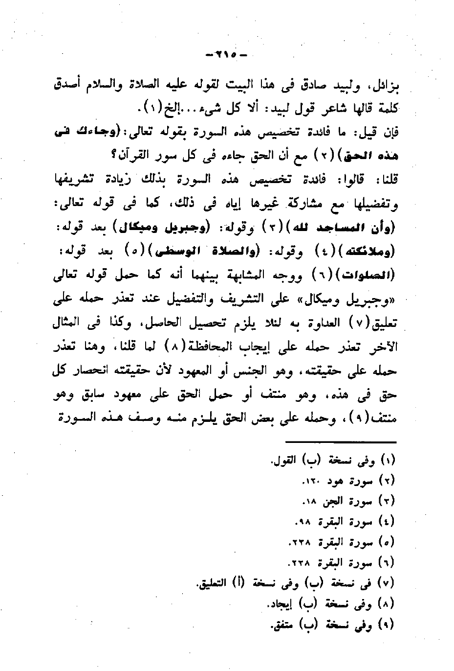 بزائل، ولبيد صادق في هذا البيت لقوله عليه الصلاة والسلام أصدق كلمة قالها شاعر قول لبيد: ألا كل شيء ... إلخ) .
