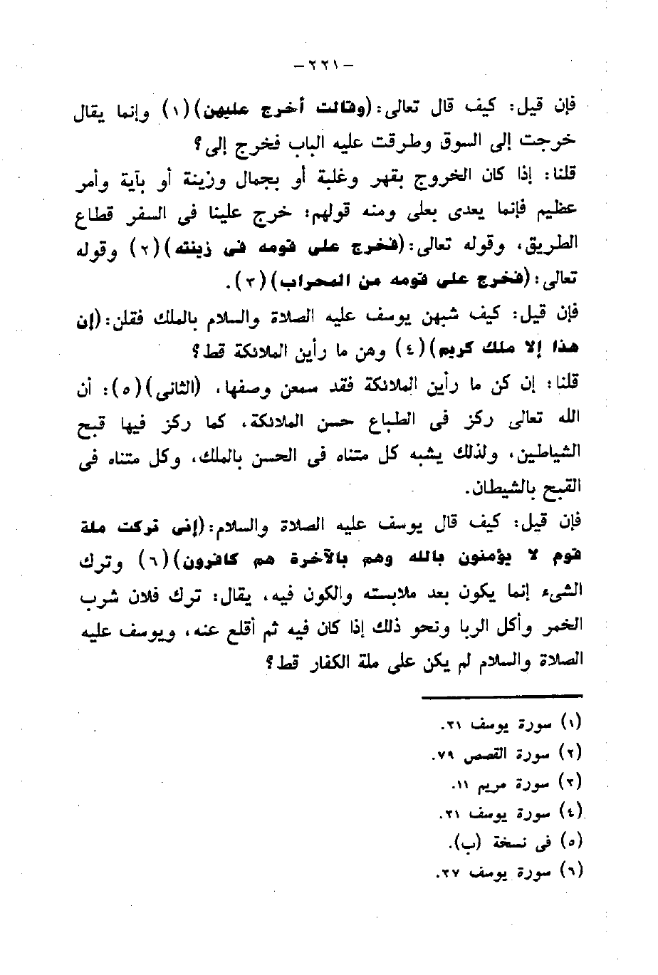 فإن قيل: كيف قال يوسف عليه الصلاة والسلام: (إِنِّي تَرَكْتُ مِلَّةَ قَوْمٍ لَا يُؤْمِنُونَ بِاللَّهِ وَهُمْ بِالْآخِرَةِ هُمْ كَافِرُونَ) وترك الشىء إنما يكون بعد ملابسته والكون فيه، يقال: ترك فلإن شرب الخمر وأكل الربا ونحو ذلك إذا كان فيه ثم أقلع عنه، ويوسف عليه الصلاة والسلام لم يكز على ملة الكفار قط؟