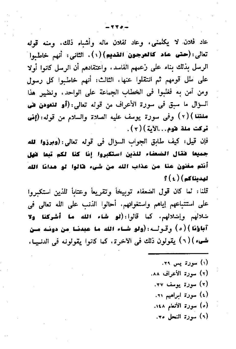 فإن قيل: كيف طابق الجواب السؤال في قوله تعالى: (وَبَرَزُوا لِلَّهِ جَمِيعًا فَقَالَ الضُّعَفَاءُ لِلَّذِينَ اسْتَكْبَرُوا إِنَّا كُنَّا لَكُمْ تَبَعًا فَهَلْ أَنْتُمْ مُغْنُونَ عَنَّا مِنْ عَذَابِ اللَّهِ مِنْ شَيْءٍ قَالُوا لَوْ هَدَانَا اللَّهُ لَهَدَيْنَاكُمْ) ؟