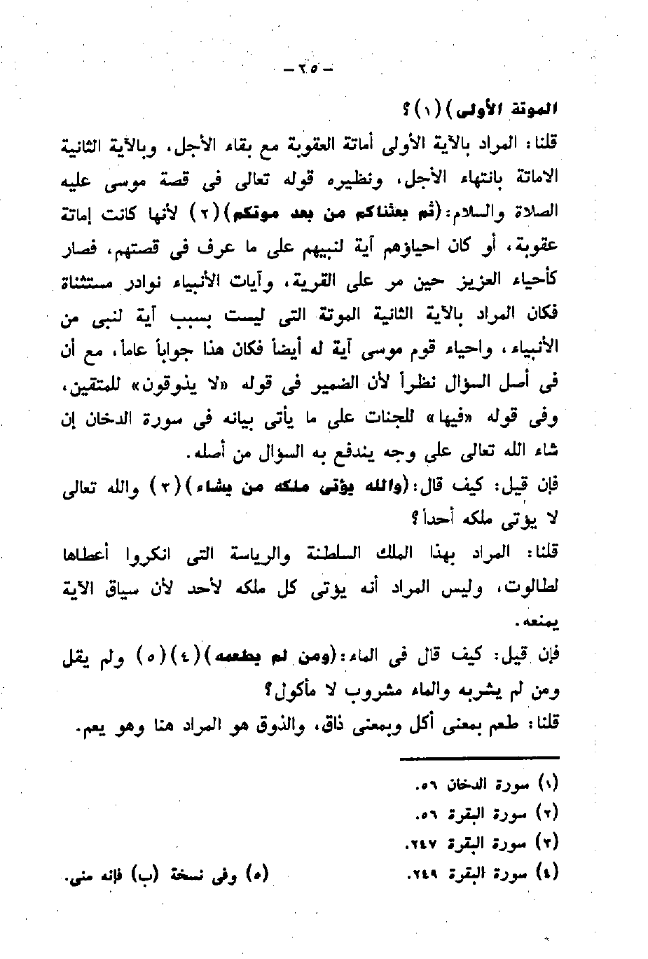 لأنها كانت إماتة عقوبة، أو كان احياءهم آية لنبيهم على ما عرف في قصتهم، فصار كإحياء العزير حين مر على القرية، وآيات الأنبياء نوادر مستثناة فكان المراد بالآية الثانية الموتة التى ليست بسبب آية لنبى من الأنبياء، وإحياء قوم موسى آية له أيضاً فكان هذا جواباً عاماً، مع أن في أصل السؤال نظراً لأن الضمير في قوله: " لا يذوقون " للمتقين.