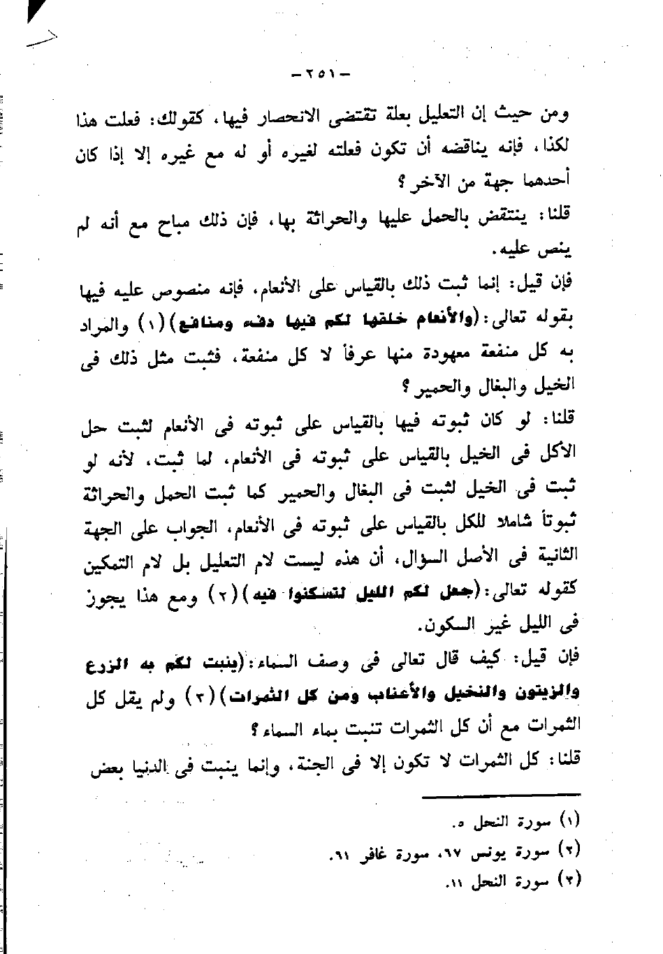قلنا: لو كان ثبوته فيها بالقياس على ثبوته في الأنعام لثبت حل الاكل في الخيل بالقياس على ثبوته في الأنعام، لما ثبت، لأنه لو ثبت في الخيل لثبت في البغال والحمير كما ثبت الحمل والحراثة ثبوتاً شاملا للكل بالقياس على ثبوته في الأنعام، الجواب على الجهة
