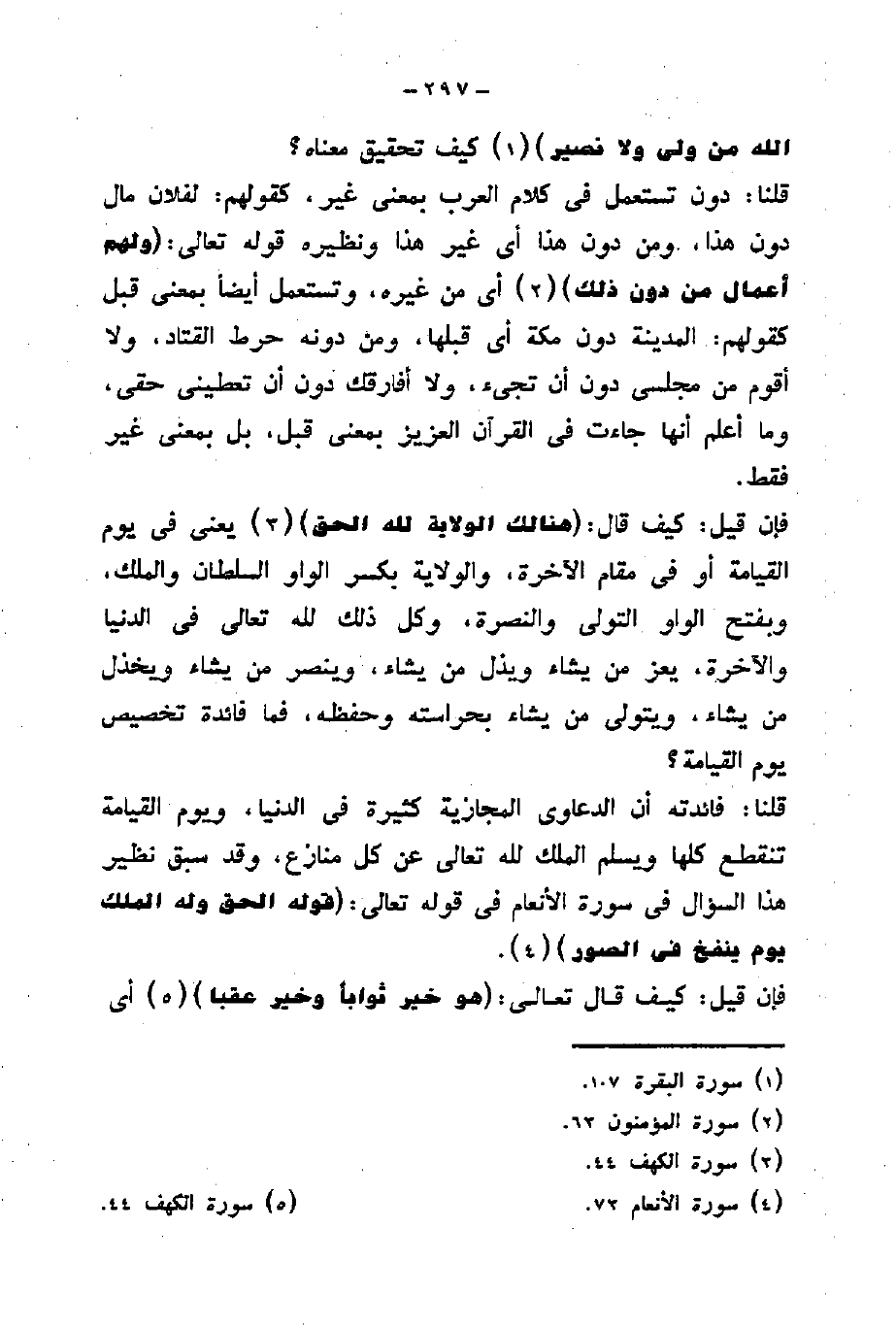 قلنا: دون تستعمل في كلام العرب بمعنى غير، كقولهم: لفلان مال دون هذا، ومن دون هذا أي غير هذا ونظيره قوله تعالى: (وَلَهُمْ أَعْمَالٌ مِنْ دُونِ ذَلِكَ) أي من غيره، وتستعمل أيضاً بمعنى قبل كقولهم: المدينة دون مكة أي قبلها، ومن دونه حرط القتاد، ولا أقوم من مجلس دون أن تجيء، ولا أفارقك دون أن تعطينى حقى.