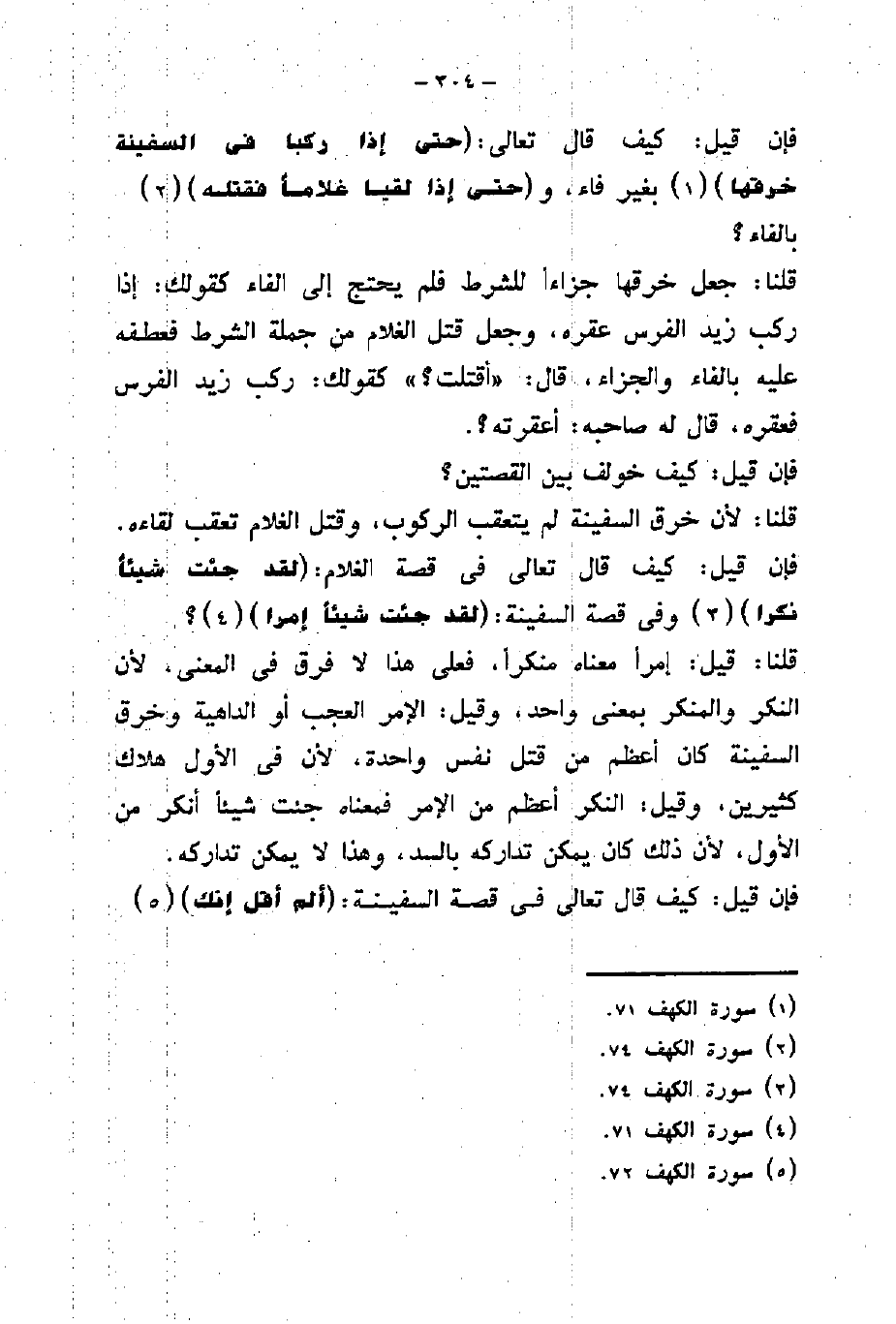 فإن قيل: كيف قال تعالى: (حَتَّى إِذَا رَكِبَا فِي السَّفِينَةِ خَرَقَهَا) بغير فاء، و (حَتَّى إِذَا لَقِيَا غُلَامًا فَقَتَلَهُ) بالفاء؟