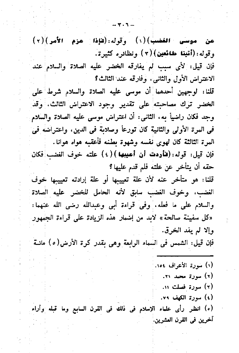 قلنا: لوجهين أحدهما أن موسى عليه الصلاة والسلام شرط على الخضر ترك مصاحبته على تقدير وجود الاعتراض الثالث، وقد وجد فكان راضياً به، الثانى: أن اعتراض موسى عليه الصلاة والسلام في المرة الأولى والثانية كان تورعاً وصلابة في الدين، واعتراضه في المرة الثالثة كان لهوى نفسه وشهوة بطنه فأعقبه هواه هوانا.