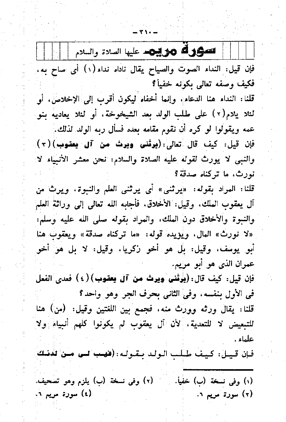قلنا: المراد بقوله: "يرثنى " أي يرثنى العلم والنبوة، ويرث من آل يعقوب الملك، وقيل: الأخلاق، فأجابه الله تعالى إلى ولى وراثة العلم والنبوة والأخلاق دون الملك، وألمراد بقوله صلى الله عليه وسلم: