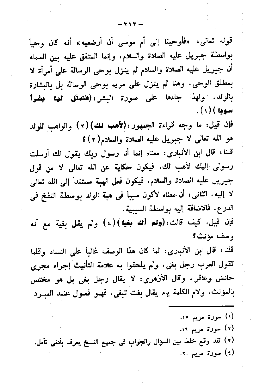 قوله تعالى: " وَأَوْحَيْنَا إِلَى أُمِّ مُوسَى أَنْ أَرْضِعِيهِ " أنه كان وحياً بواسطة جبريل عليه الصلاة والسلام، وإنما المتفق عليه بين العلماء أن جبريل عليه الصلاة والسلام لم ينزل بوحى الرسالة على أمرأة لا بمطلق الوحى، وهنا لم ينزل على مويم بوحى الرسالة بل بالبشارة بالولد، ولهذا جاءها على صورة البشر: (فَتَمَثَّلَ لَهَا بَشَرًا سَوِيًّا) .