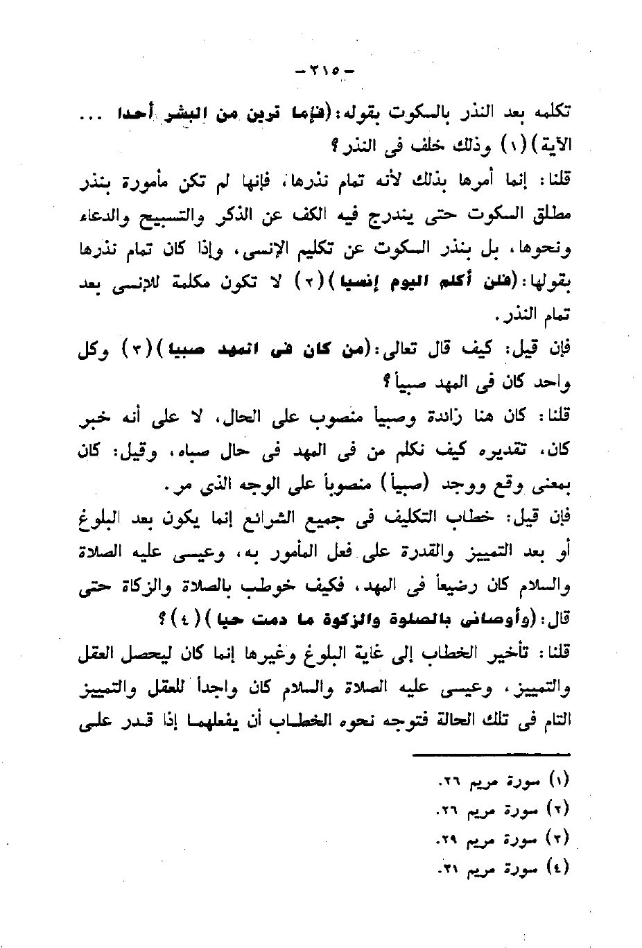قلنا: إنما أمرها بذلك لأنه تمام نذرها، فإنها لم تكن مأمورة بنذر مطلق السكوت حتى يندرج فيه الكف عن الذكر والتسبيح والدعاء ونحوها، بل بنذر السكوت عن تكليم الإنسى، وإذا كان تمام نذرها بقولها: (فَلَنْ أُكَلِّمَ الْيَوْمَ إِنْسِيًّا) لا تكون مكلمة للإنسى بعد تمام النذر.