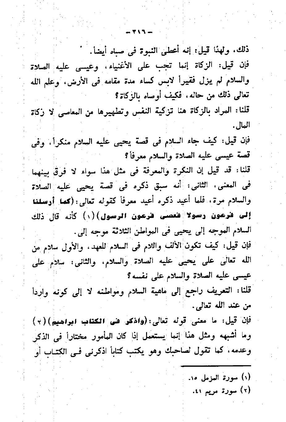 قلنا: قد قيل إن النكرة والمعرفة في مثل هذا سواء لا فرق بينهما في المعنى، الثانى: أنه سبق ذكره في قصة يحيى عليه الصلاة والسلام مرة، فلما أعيد ذكره أعيد معرفاً كقوله تعالى: (فَعَصَى فِرْعَوْنُ الرَّسُولَ) كأنه قال ذلك