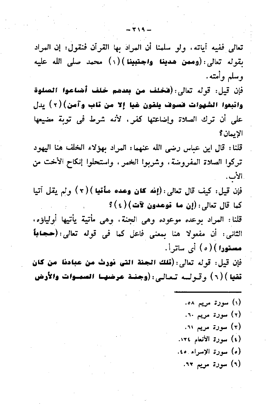 فإن قيل: قوله تعالى: (فَخَلَفَ مِنْ بَعْدِهِمْ خَلْفٌ أَضَاعُوا الصَّلَاةَ وَاتَّبَعُوا الشَّهَوَاتِ فَسَوْفَ يَلْقَوْنَ غَيًّا (59) إِلَّا مَنْ تَابَ وَآمَنَ) يدل على أن ترك الصلاة واضاعتها كفر، لأنه شرط في توبة مضيعها الإيمان؟