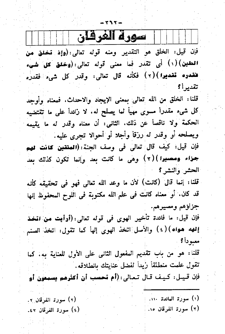 فإن قيل: الخلق هو تقدير ومنه قوله تعالى: (وَإِذْ تَخْلُقُ مِنَ الطِّينِ) أي تقدر فما معنى قوله تعالى: (وَخَلَقَ كُلَّ شَيْءٍ فَقَدَّرَهُ تَقْدِيرًا) فكأنه قال تعالى: وقدر كل شى فقدره تقديرا؟